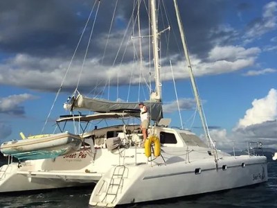Relax aboard Sweet Pea, you’ll enjoy the large shaded cockpit for lounging and dining, oversized trampolines for the ultimate tanning area, bean bag chairs and modern bathrooms, two easy access swim ladders with fresh water showers, quality snorkel gear, paddle board and a large dinghy with outboard for exploring.
