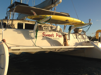 Sweet Pea Luxury Sailing Catamaran – 40 by 25 foot.. Specializing in private day sails and specialty excursions. Sweet Pea departs from Red Hook on St. Thomas or Cruz Bay on St. John. Because we only do private charters for a maximum of 12 people, we can customize your trip to your groups’ needs.